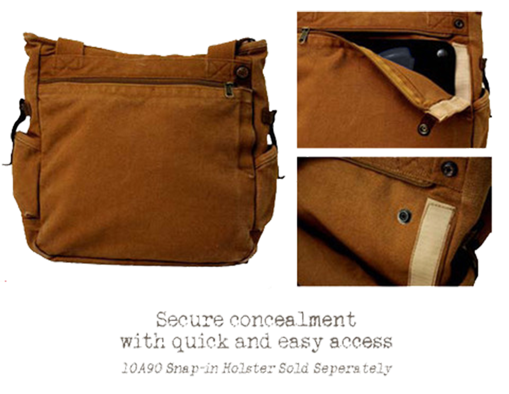 Slip in, slip out. Sight unseen.Designed to fit the Utility (C10L35) and Satchel (C11L36) bags. The SNAP-IN BAG HOLSTER?ÿslips into the bag's purpose built compartment and is secured?ÿinto place with sturdy brass snaps.