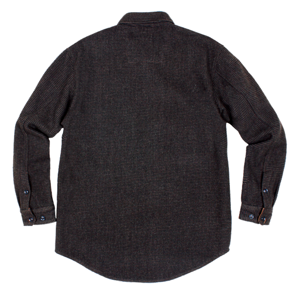 If you have ever been to Portland Oregon, or Portland Australia, you will know the true value of this shirt. Rains for nine months of the year, and drips off the trees for the other three. Great people though. The PORTLAND OVERSHIRT is a thick wool blend that's been treated so that you won't itch. But just in case you are an especially sensitive person like myself, we have lined the collar rink, back yokes, cuffs and under flaps in a fine cotton. We had it woven just a little looser than normal so it would hug better and keeps you warm, and you can wear this shirt out or tucked in. Double patch pockets with box pleats, covered by button down flaps.