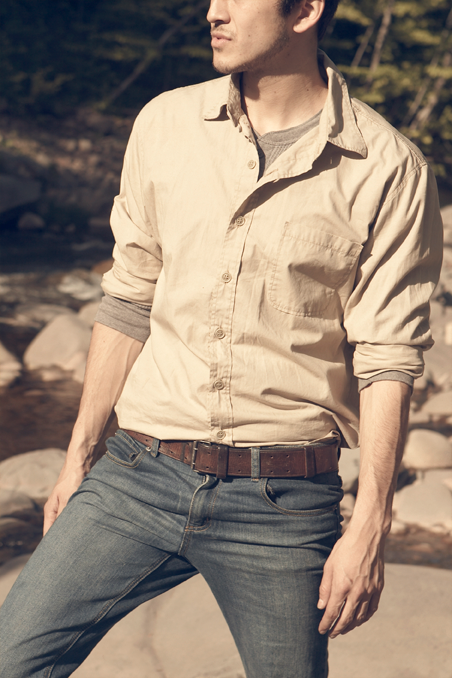 The BANKSTOWN shirt features front plackets, curved chest pocket buttoned in the center, original styling.