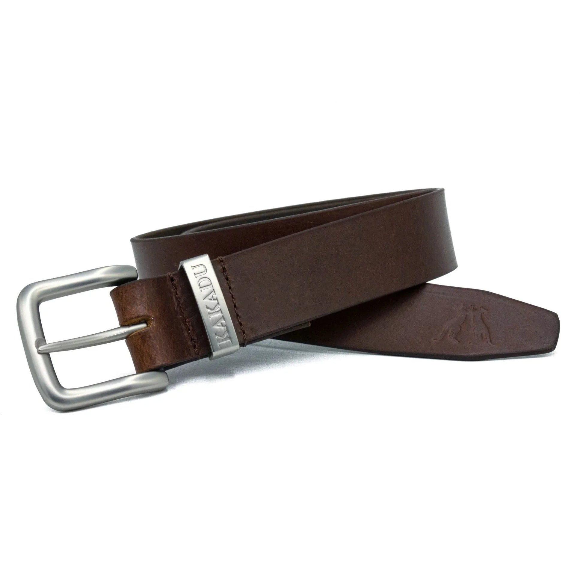 A workwear staple the Iron Bark Belt is built from thick bridle Leather with silver buckle and single keeper.