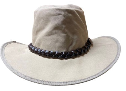 The CAPE YORK CANVAS HAT is a great bush hat. Thin, light but firm and really tough (sounds like they were talking about me when they were describing this hat). Made from coated canvas so you can use it in all weather. We used a mono filament (real thick fishing line) to hold the brim that is pliable enough to fold away in your luggage when you are traveling. Includes a three strand hand braided hat band and draw corded chin strap. UPF50+ so you are covered.