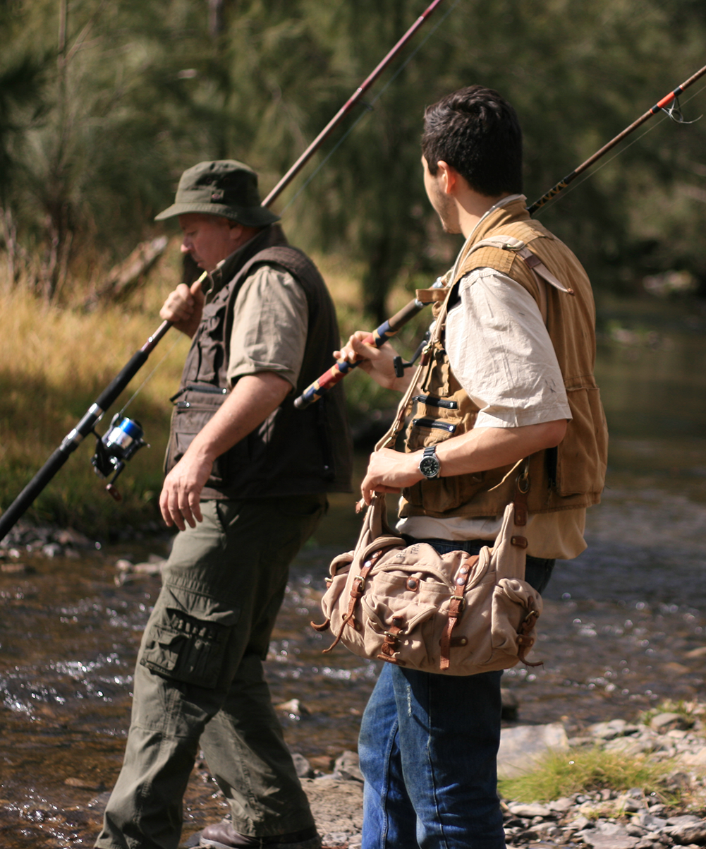 One up on our Gibson vest, we added a game bag to the back, so now there are 16 pockets: 9 front patch pockets, 2 front zip storage pockets, 2 side entry welt pockets, 2 internal security pockets. Made from washed 12 oz gravel canvas with a brass zip closure, cowhide trim, and a full cotton lining.