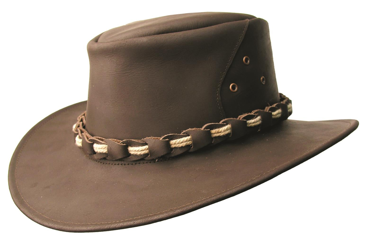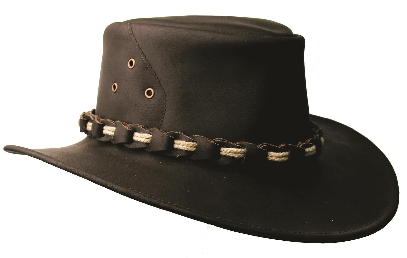 Constructed from a grain leather with a smooth rich dull lustre that is free from all surface imperfections. A firm handle that will relax with age. Features a hand wonven rope chain hat band. Large crown, medium brim.