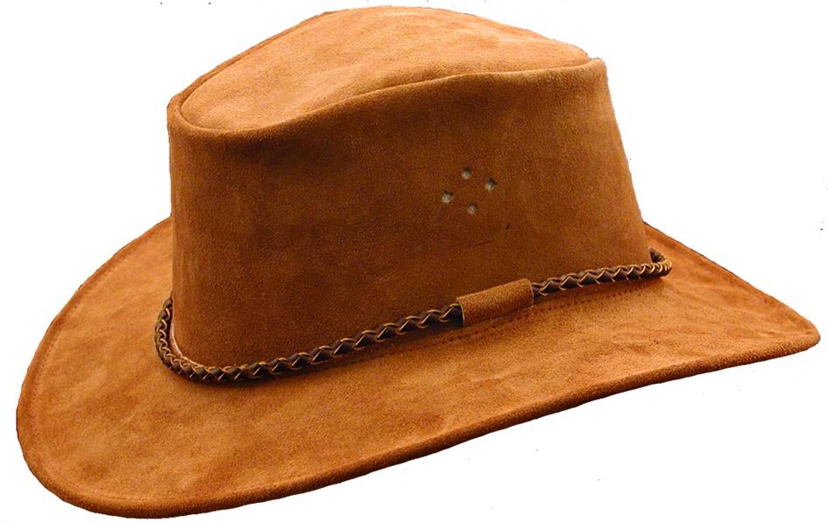The lighter colours of suede are perfect for hotter climates which is how the QUEENSLANDER came about. The hat has a high rounded crown with ventilation holes, braided round hatband, medium brim and a built-in chinstrap facility.