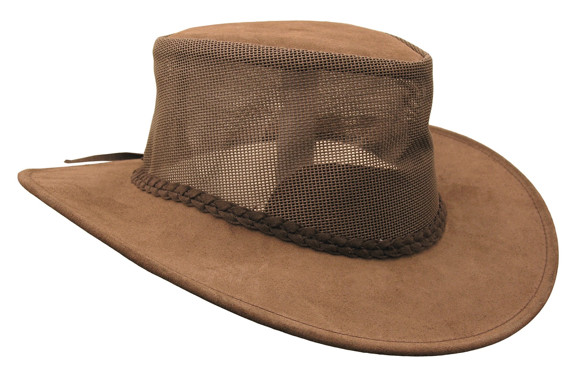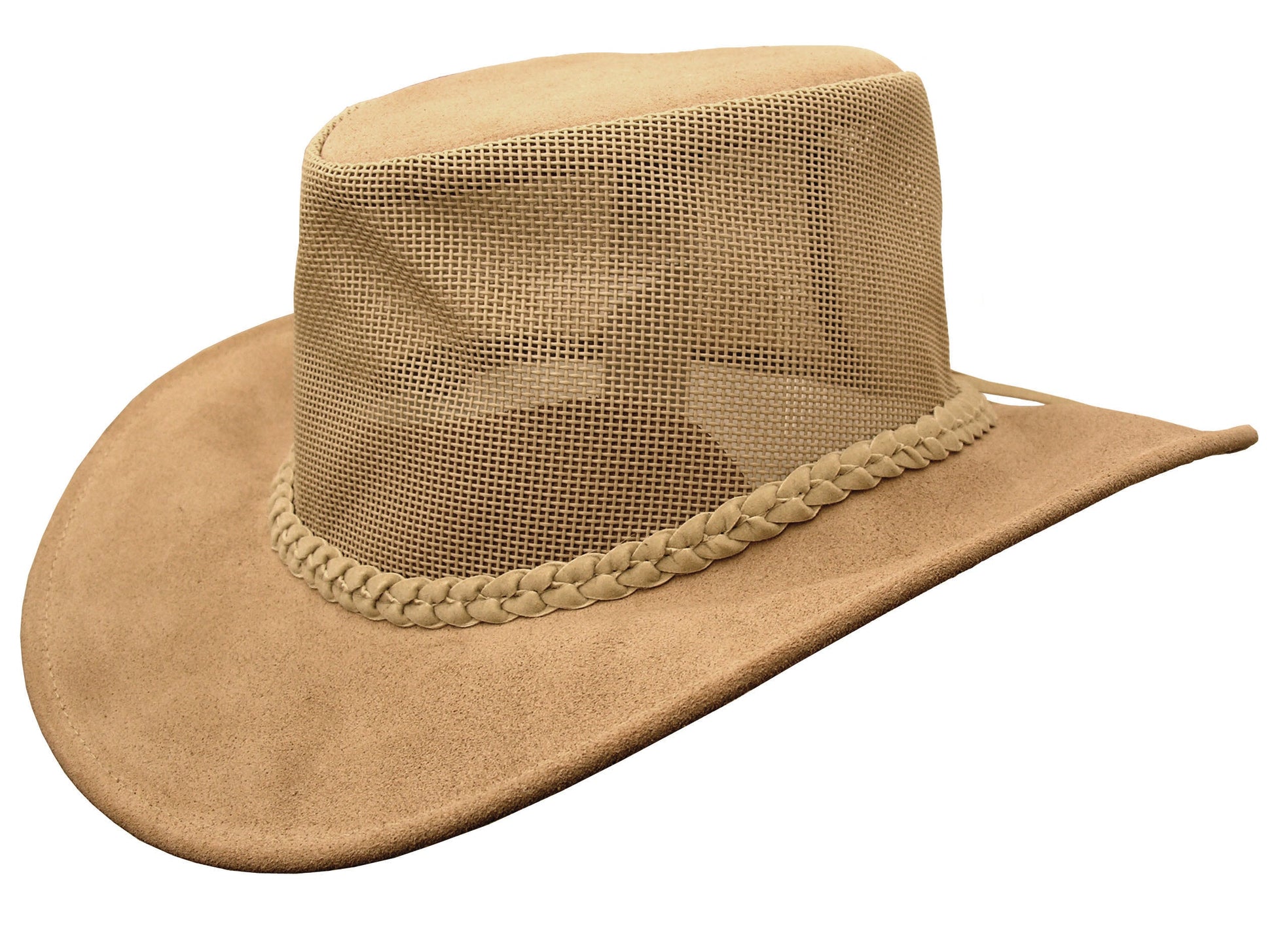 A cut above the rest. If you have always wanted your mesh hat to be in leather then the BENDIGO is it. Mossback cowhide suede forms the brim and cap with tone-on mesh forming the crown. We used a contrast chocolate brown three strand, hand braided hat band for that little lift.