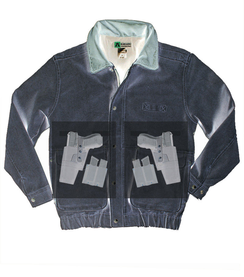 The art in concealment is in the normality. The DEAN JACKET is a classic design with that unique Kakadu finish. Features cowhide collar, brass zip closure, lower welted hand warmer pockets, top welted pocket with security zip and snap cuff closure. Fully lined in 100% cotton with double security pocket and it's all built out of our 10oz Oilcloth. This jacket comes with our exclusive Concealed Carry Internal System (CCIS) incorporated.