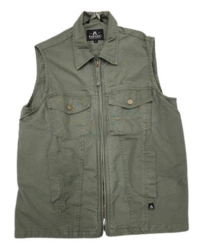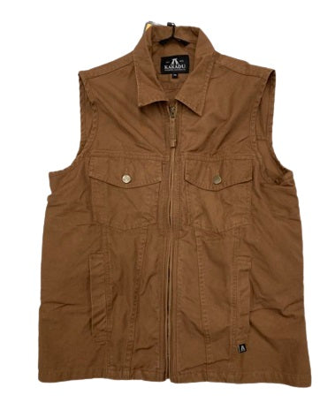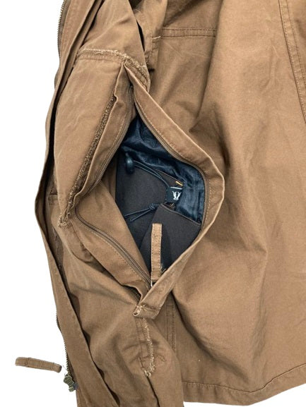 We chose a classic denim vest style that has been around forever, making it easy to blend into the crowd. A lighter weight 8 oz Gunn Worn 100% cotton canvas vest, unlined for warmer climates. Brass zip front closure, snap down flaps cover top welted pockets, lower side entry hand warmer pockets. Underarm left and right side built-in holsters with zipper closures. All carefully designed for anti-imprinting and weight disbursement. Holster is designed for compact and sub-compact. Machine washable.