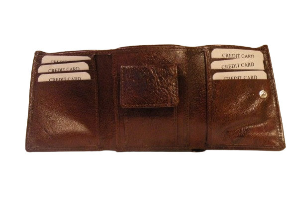 The Cooktown wallet is made from textured buffalo leather. This tri-fold wallet features 2 currency slots, 6 card stots, 3 hidden pockets and a snap-close coin pockets. Single snap keeps wallet closed. Measures 3.5 inches long and 1 inch wide when closed, 4 inches high.