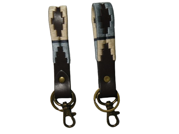 This buffalo leather Polo key ring features an intricate stitch design and a swivel snap hook for convenience. Made with high-quality materials, it is durable and stylish. Perfect for anyone looking for a unique and functional key ring.